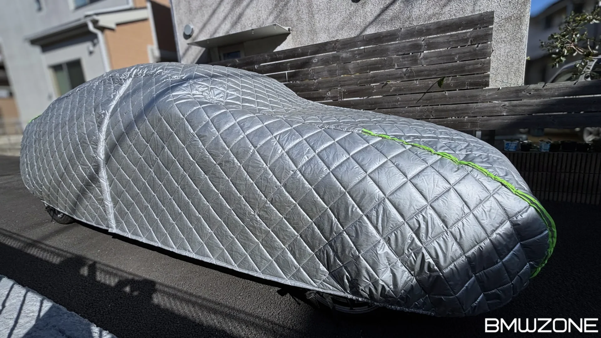 薄いカバーだと風で激しくパタパタとはためいて、それを見ているだけで「ボディに擦り傷がついてるんじゃないか・・・」と本当にストレスなんですよね。