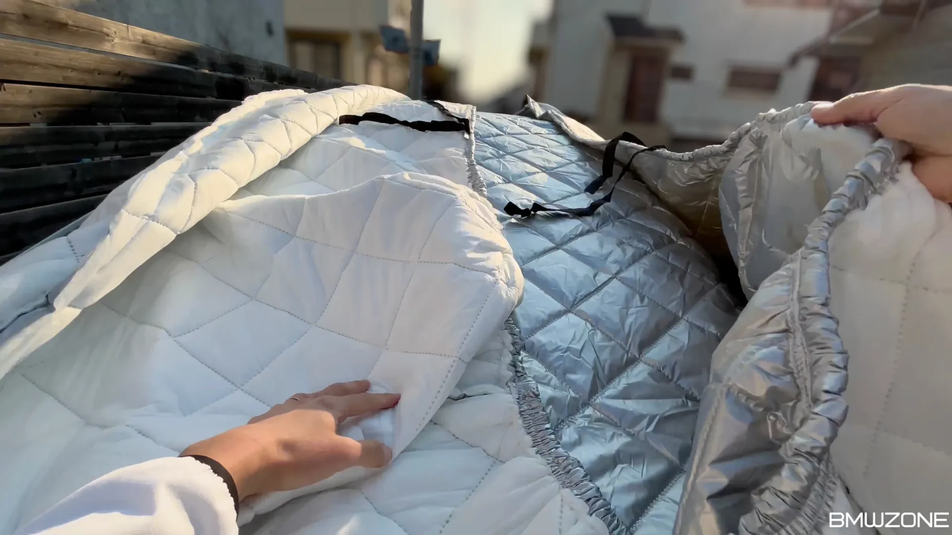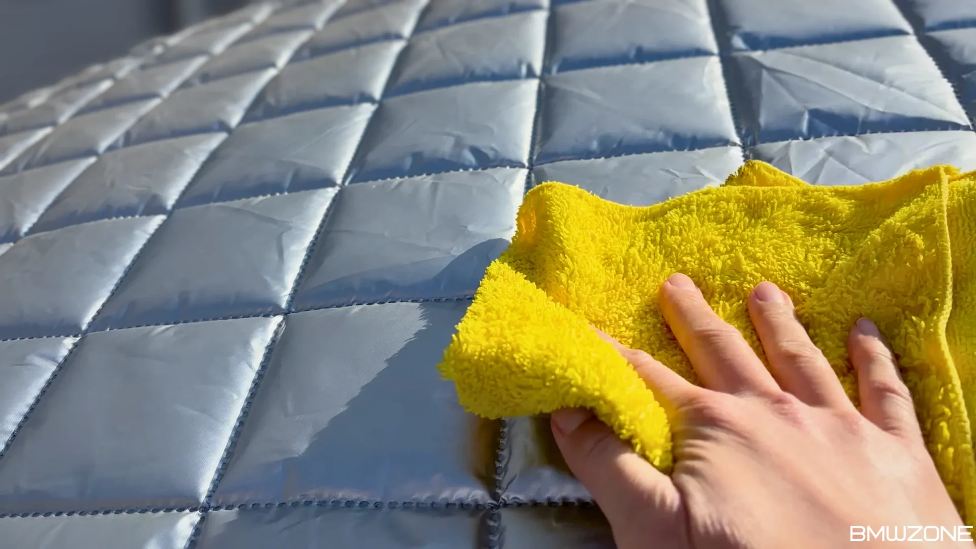 もう布団かよってくらいフカフカの分厚い生地が強烈な紫外線ダメージから塗装を物理的に防ぎつつ、着脱のストレスや擦り傷のリスクを最小限に抑えてくれるんですよね。