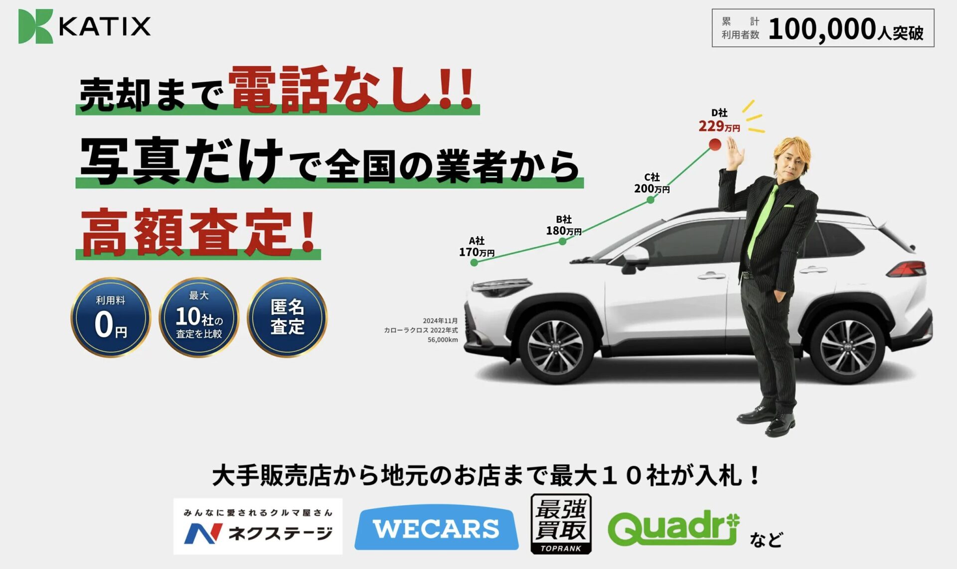 最近テレビCMなどでも見かけるようになった「カチエックス(KATIX)」。 一言で言うと、これまでの車買取サービスの最大の欠点を解消した売却方法です。