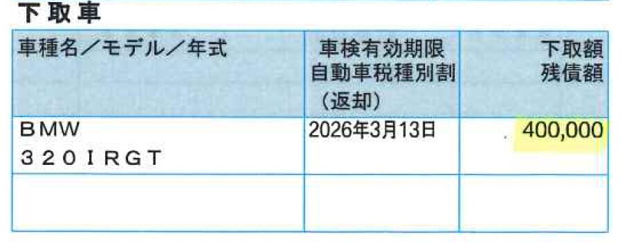 まずは、次の車の購入検討も兼ねて、BMW正規ディーラーから事前にメールで提示された下取り概算額は、なんと40万円。
