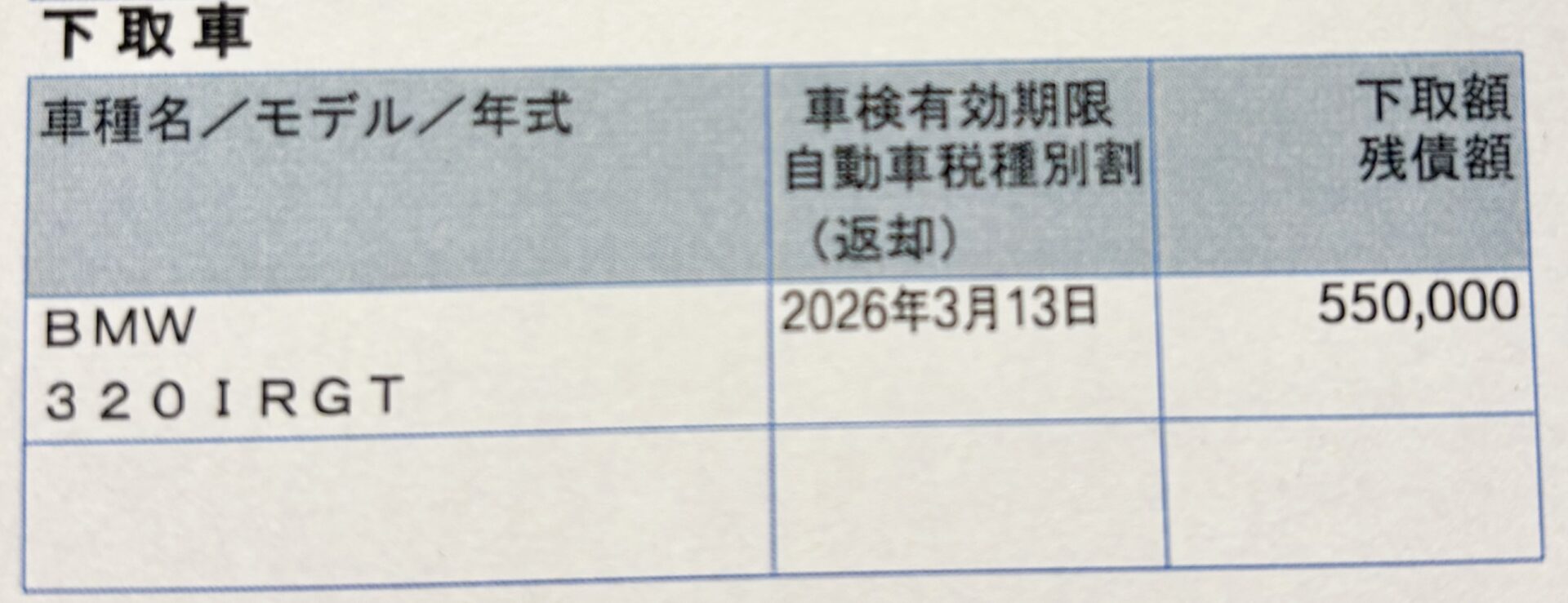 - BMWディーラー下取り:550,000円