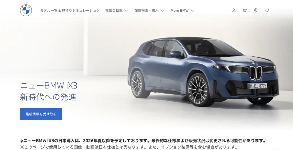 BMW Group Japanの発表によれば、iX3の日本向け生産は2026年3月開始予定。